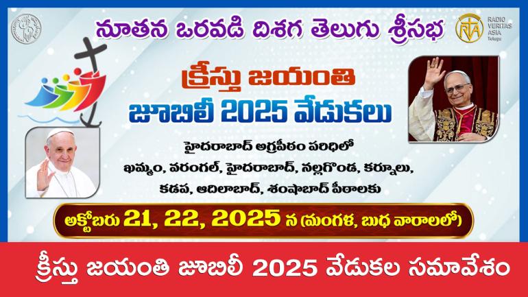 హైదరాబాద్ అగ్రపీఠం పరిధిలో ఖమ్మం, వరంగల్, హైదరాబాద్, నల్లగొండ, కర్నూలు, కడప, ఆదిలాబాద్, శంషాబాద్ పీఠాలకు అక్టోబరు 21, 22, 2025 తేదీలలో "క్రీస్తు జయంతి జూబిలీ 2025 వేడుకలు" నిర్వహించనున్నారు.